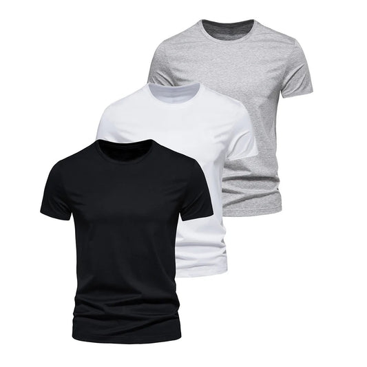 Pack of 3 Basic T-Shirts for Men – Slim Fit, Round Neck, High Comfort